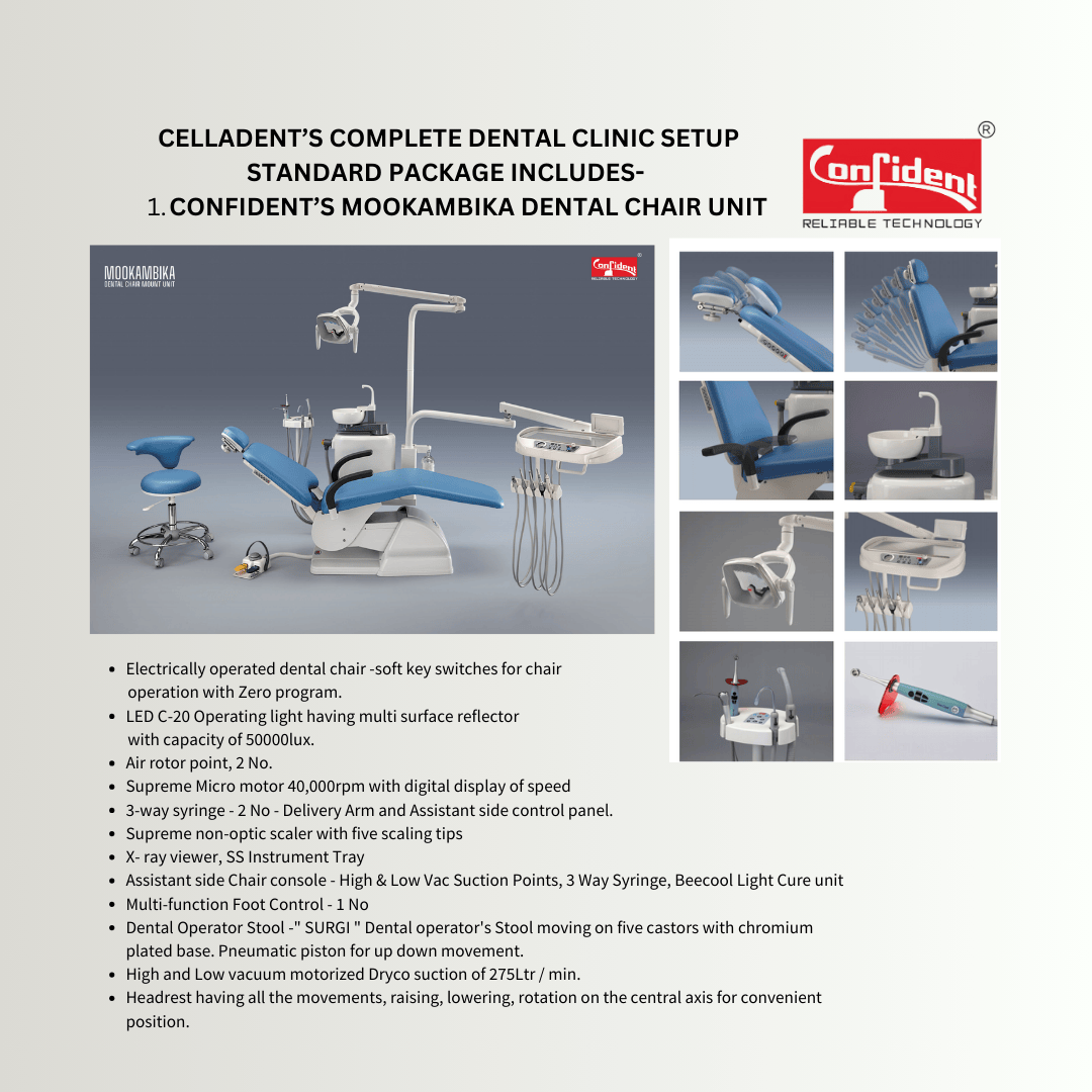 - The Hub: CONFIDENT Mookambika Dental Chair Unit A significant step up in comfort and control, the Mookambika unit is built for heavy-duty clinical use.