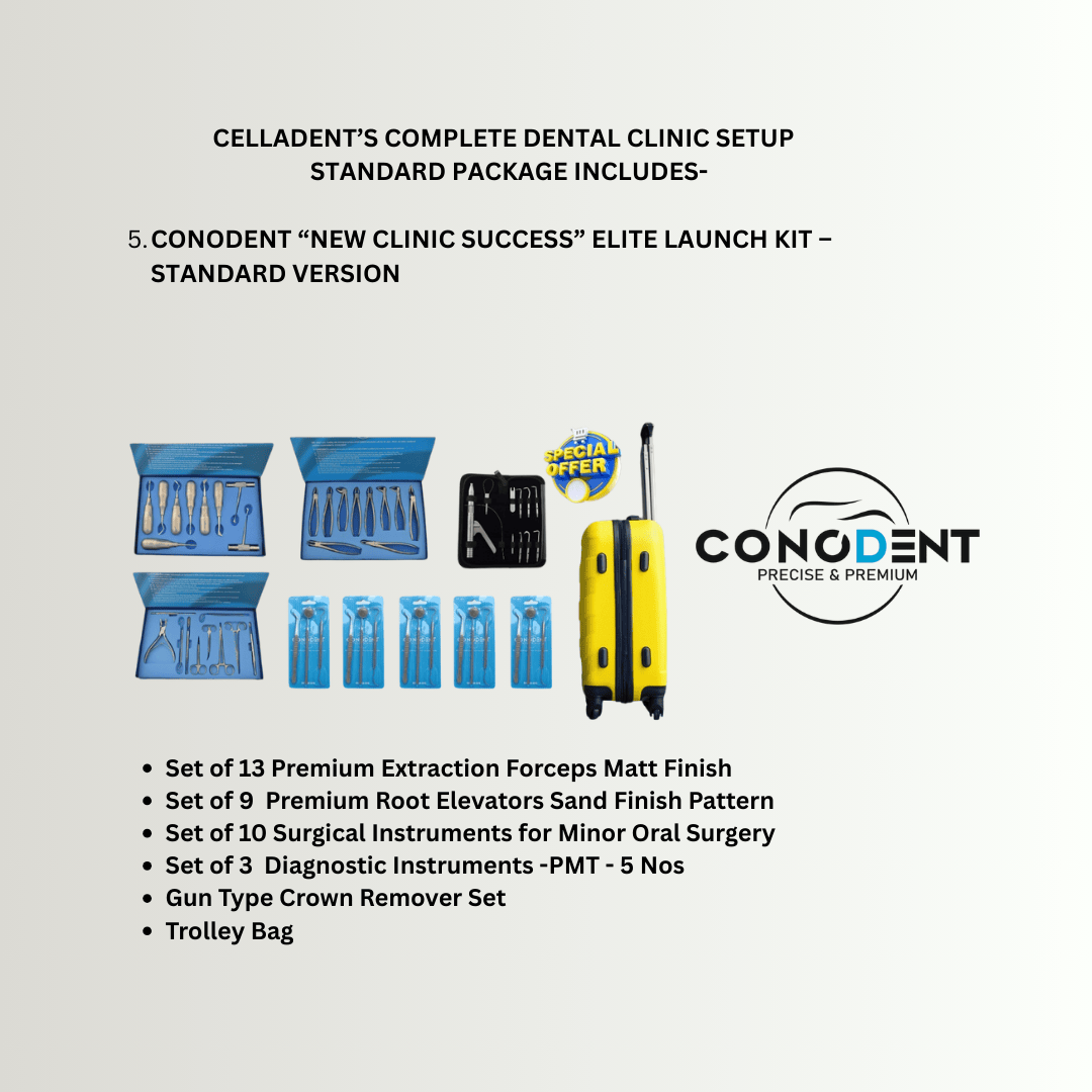 - CONODENT Elite Launch Kit: The “New Clinic Success” Standard Version—premium dental instruments imported from Oman.