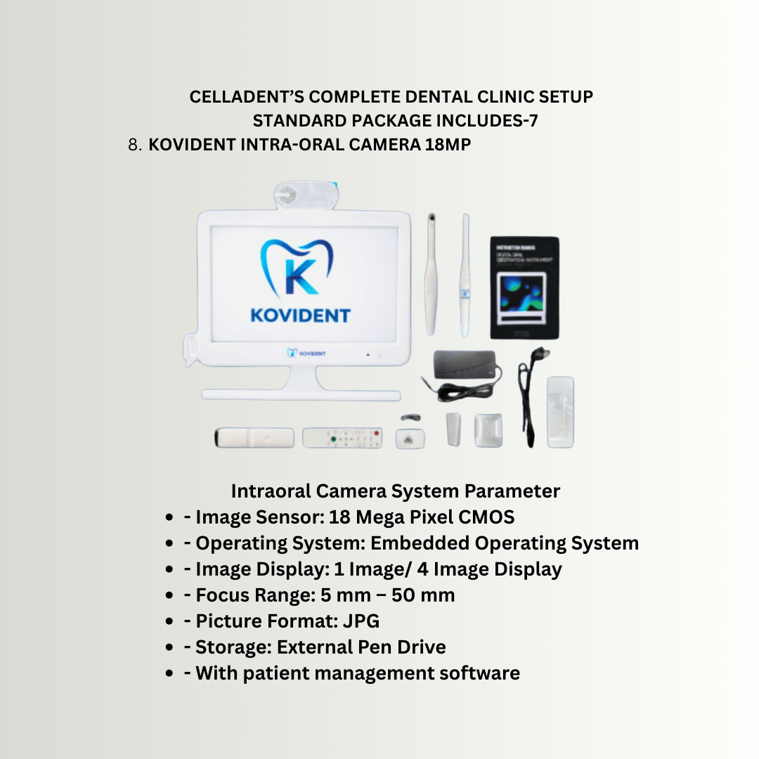- Kovident 18MP Intraoral Camera: High-definition 18 Megapixel imaging with built-in LED lights and Patient Management Software to boost patient education and case acceptance.