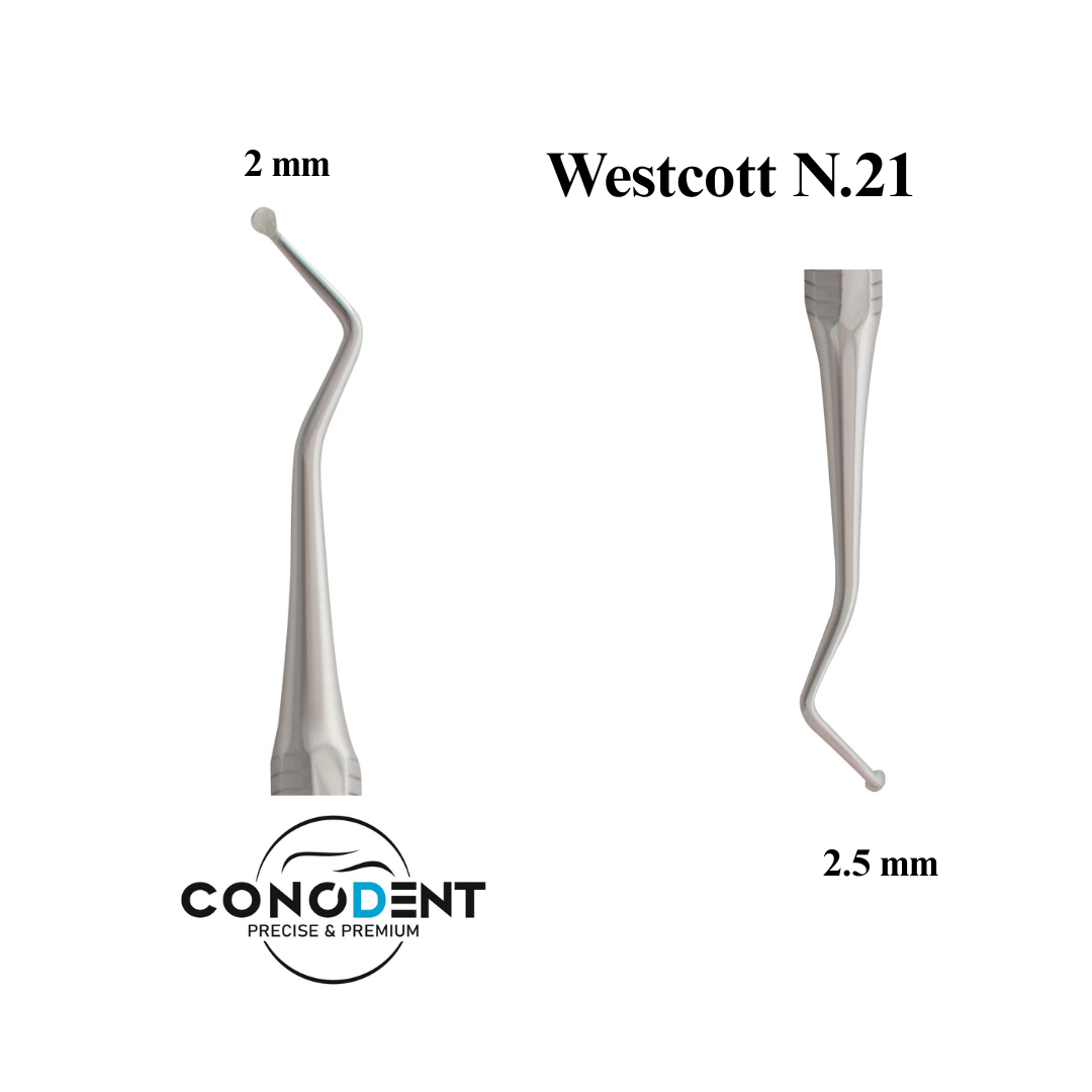 The CDT-C-539 Westcott N.21 18 Spoon Excavator by CONODENT is a precision dental instrument designed for effective removal of carious dentin. Featuring dual spoon tips (2 mm & 2.5 mm) and an angulated design for better access, it ensures controlled excavation and clinical efficiency. Made from high-quality stainless steel, it is durable, corrosion-resistant, and fully autoclavable.
